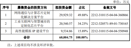 灿芯股份本次拟在上交所科创板发行股份不超过3,000万股(本次发行不涉及老股东公开发售其所持有的公司股份,亦不采用超额配售选择权)。本次发行股数占公司发行后总股本的比例不低于25%。公司此次拟募集资金60,004.75万元,计划用于网络通信与计算芯片定制化解决方案平台、工业互联网与智慧城市的定制化芯片平台、高性能模拟IP建设平台。