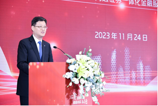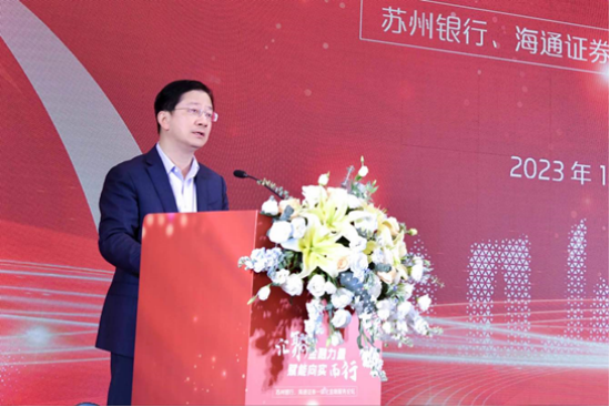 11月24日,苏州银行与海通证券在苏州联合举办“汇聚金融力量赋能向实而行”一体化金融服务论坛。苏州市委常委、常务副市长顾海东,苏州银行党委书记、董事长崔庆军,海通证券党委副书记、总经理李军出席会议并致辞。