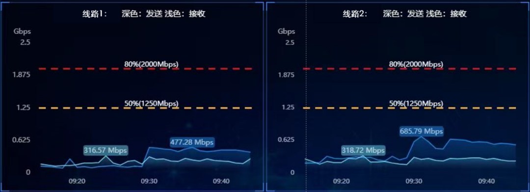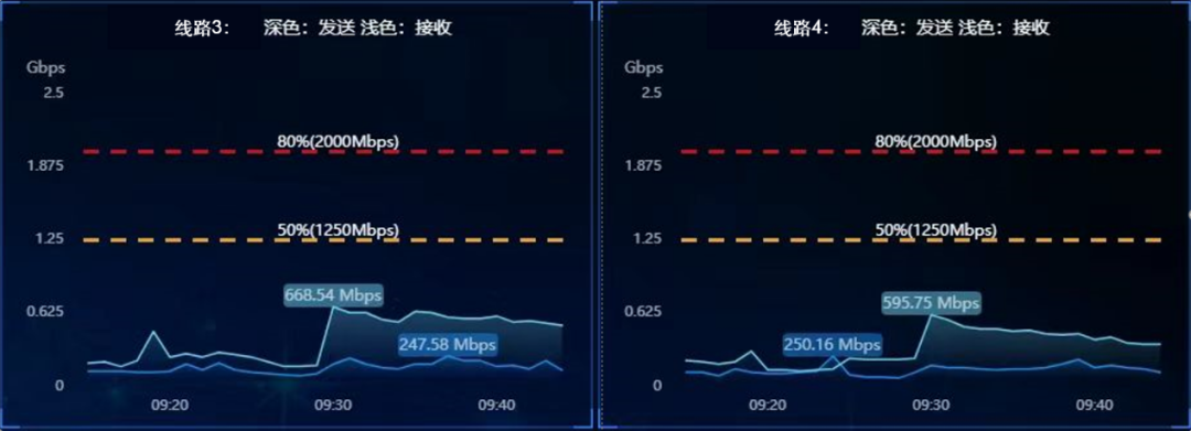 新一代骨干网通过SRv6和随流检测技术,实现业务流量的智能调度,将骨干网打造成为高效负载均衡的骨干通道,彻底解决之前链路使用不均的问题,现网的4条不同线路之间的瞬时峰值差异从50%下降到20%以下,链路带宽得到充分利用。