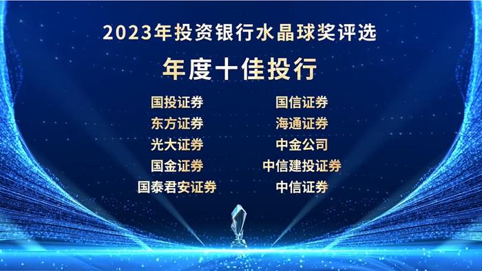 2023年12月29日,由《证券市场周刊》发起的2023年资本市场水晶球奖榜单正式发布,海通证券(600837)夺得“2023年十佳投资银行”奖项。