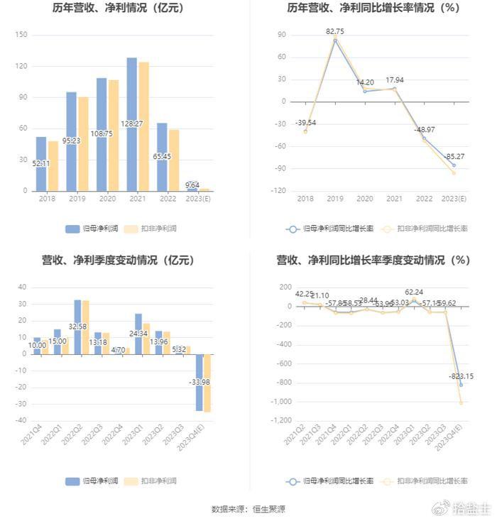 2023年年度业绩预告显示,期内海通证券预计归母净利润9.18亿元至10.1亿元,与上年同期相比将减少55.35亿元到56.27亿元,同比下降84.57%-85.97%;预计扣非净利润约1.85亿元到2.77亿元,与上年同期相比将减少约56.25亿元到57.17亿元,同比减少95.31%到96.87%。