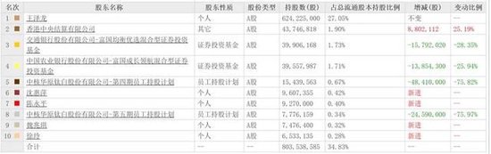 8中信中证资本管理有限公司流通A股 40,536,514 1.05%新进
