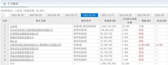 截止2023年9月26日增发限售股解禁,留下参与增发的股东变化巨大: