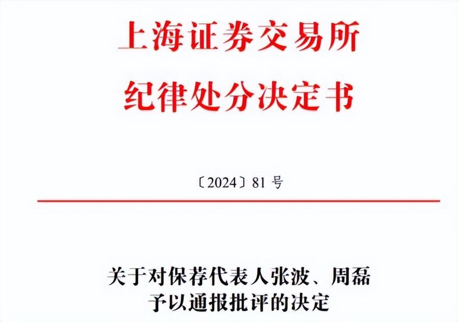 但显然难逃其责,最终,不光是科利德出事,海通证券因保荐核查工作履职尽责不到位、保荐业务内部质量控制存在薄弱环节,被上交所通报批评。公司两位保荐代表人张波、周磊也同样被通报批评。