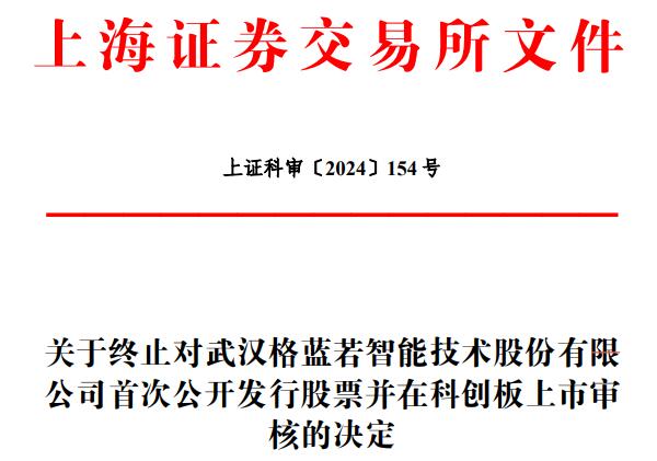 上交所网站昨日发布关于终止对武汉格蓝若智能技术股份有限公司(以下简称“格蓝若”)首次公开发行股票并在科创板上市审核的决定。