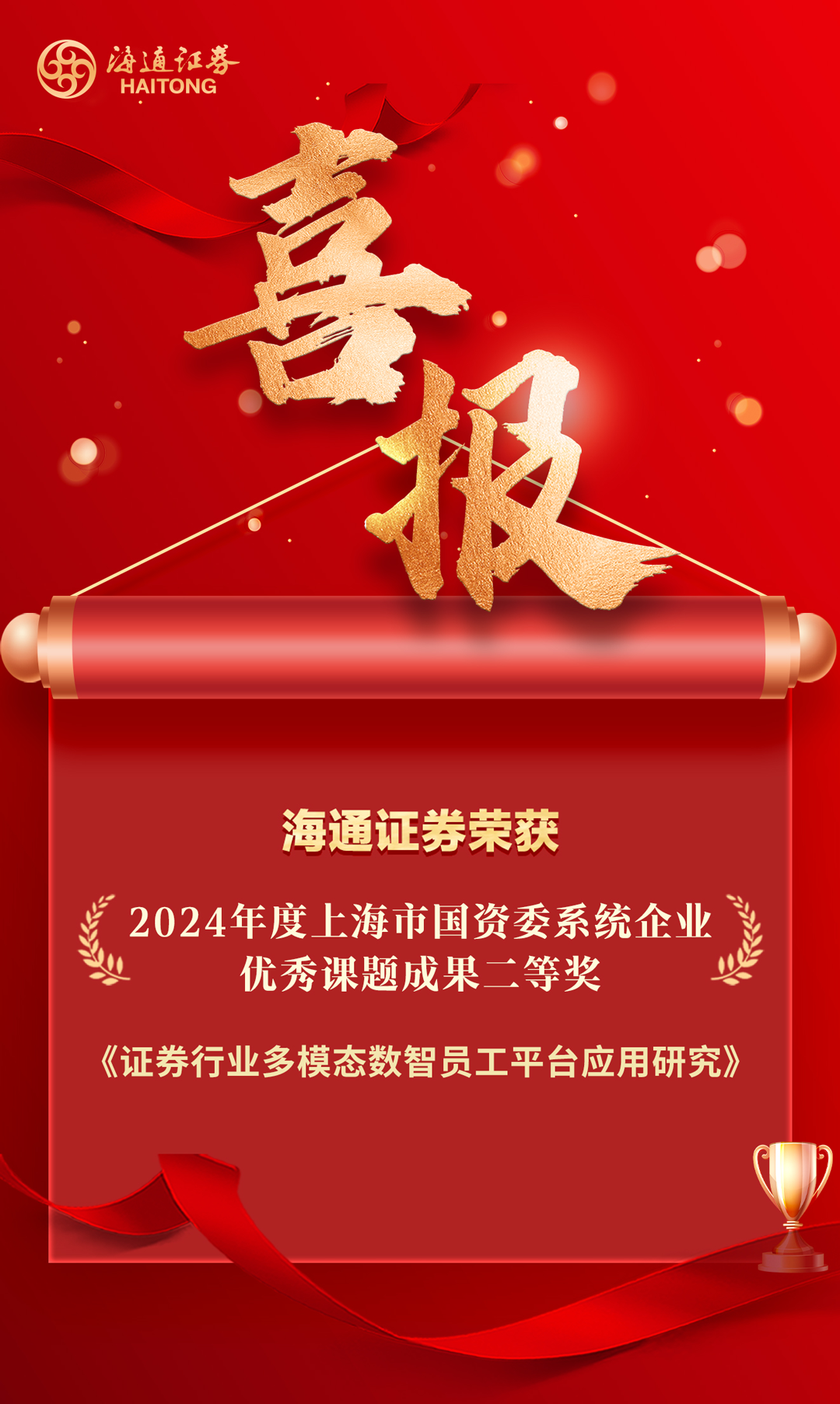 近日,上海市国资委发布2024年度上海市国资委系统企业优秀课题成果奖名单,海通证券《证券行业多模态数智员工平台应用研究》荣获2024年度上海市国资委系统企业优秀课题成果二等奖。