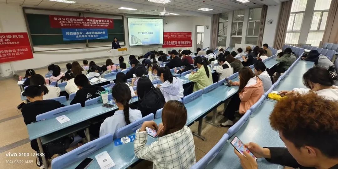 活动伊始,讲师们在之前活动中ETF初级知识普及的基础上开展了ETF中级课程的讲解。本次课程内容通过对ETF的主要优势、ETF挑选方法、相关指数概念与指数体系及交易过程的策略分析进行一一解读,并邀请同学们注册参与“2024‘海通证券杯’高校ETF模拟赛”。以模拟大赛的方式,为大学生们提供了一个安全、实用的学习平台,帮助同学们通过模拟交易提升风险管理和风险控制的能力;通过模拟交易体验市场波动,学习运用ETF的投资方法;同时也通过模拟交易使同学们理论与实践相结合,树立科学的投资观。