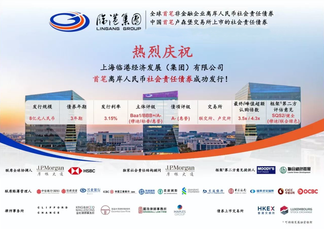 6月18日,海通证券发挥集团力量,由旗下子公司海通国际作为联席账簿管理人,助力上海临港经济发展(集团)有限公司(以下简称临港集团)在境外市场成功发行8亿元离岸人民币社会责任债券。该笔债券在香港联交所(HKEX)和卢森堡交易所(LuxSE)两地挂牌上市,成为全球首笔发行的非金融企业离岸人民币社会责任债券,以及在卢森堡交易所上市的首笔来自中国的社会责任债券,募集资金将用于符合社会责任要求的项目建设和开发。