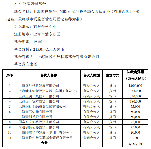 生物医药母基金:在适用法律允许的范围内,合伙企业将重点投向包括但不限于创新药物及高端制剂、高端医疗器械、生物技术、高端制药装备等生物医药相关领域。