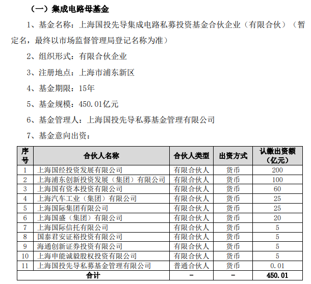 集成电路母基金:在适用法律允许的范围内,合伙企业将重点投向包括但不限于集成电路设计、制造和封测、装备材料和零部件等集成电路相关领域。