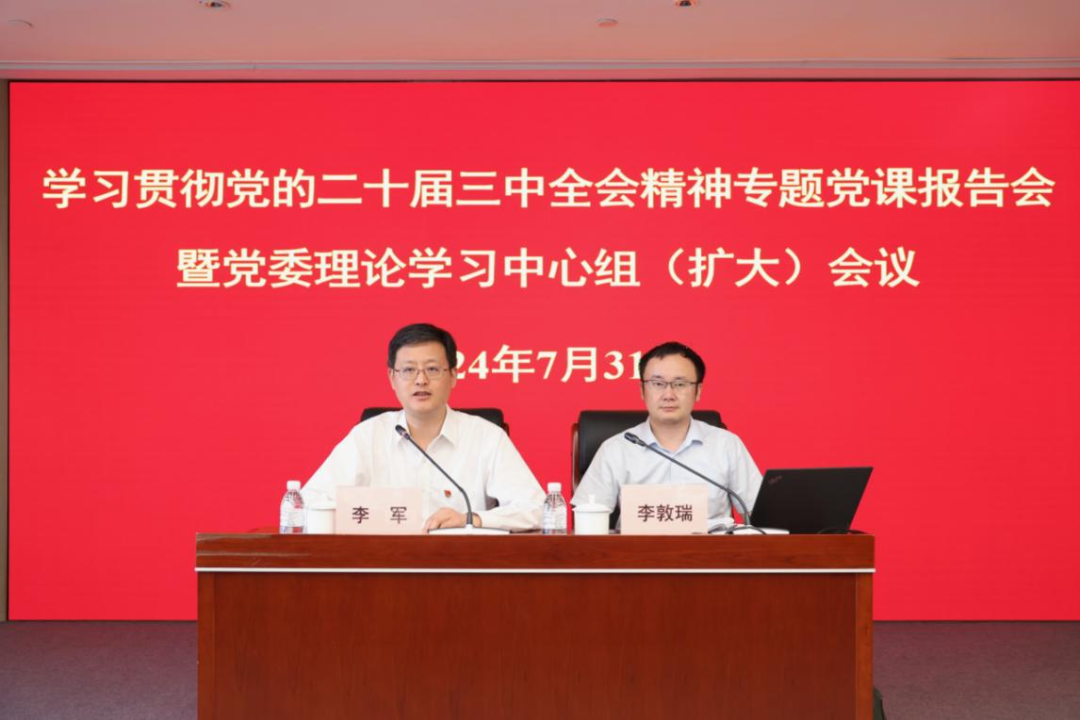 7月31日,海通证券党委举办学习贯彻党的二十届三中全会精神专题党课报告会暨党委理论学习中心组(扩大)会议,邀请中共上海市委党校李敦瑞教授以“贯彻党的二十届三中全会精神,全面推进中国式现代化”为主题作党课报告。公司党委副书记、总经理李军主持会议并讲话。公司党政领导班子成员,各直属单位党政负责同志以线上与线下相结合的方式参加学习。