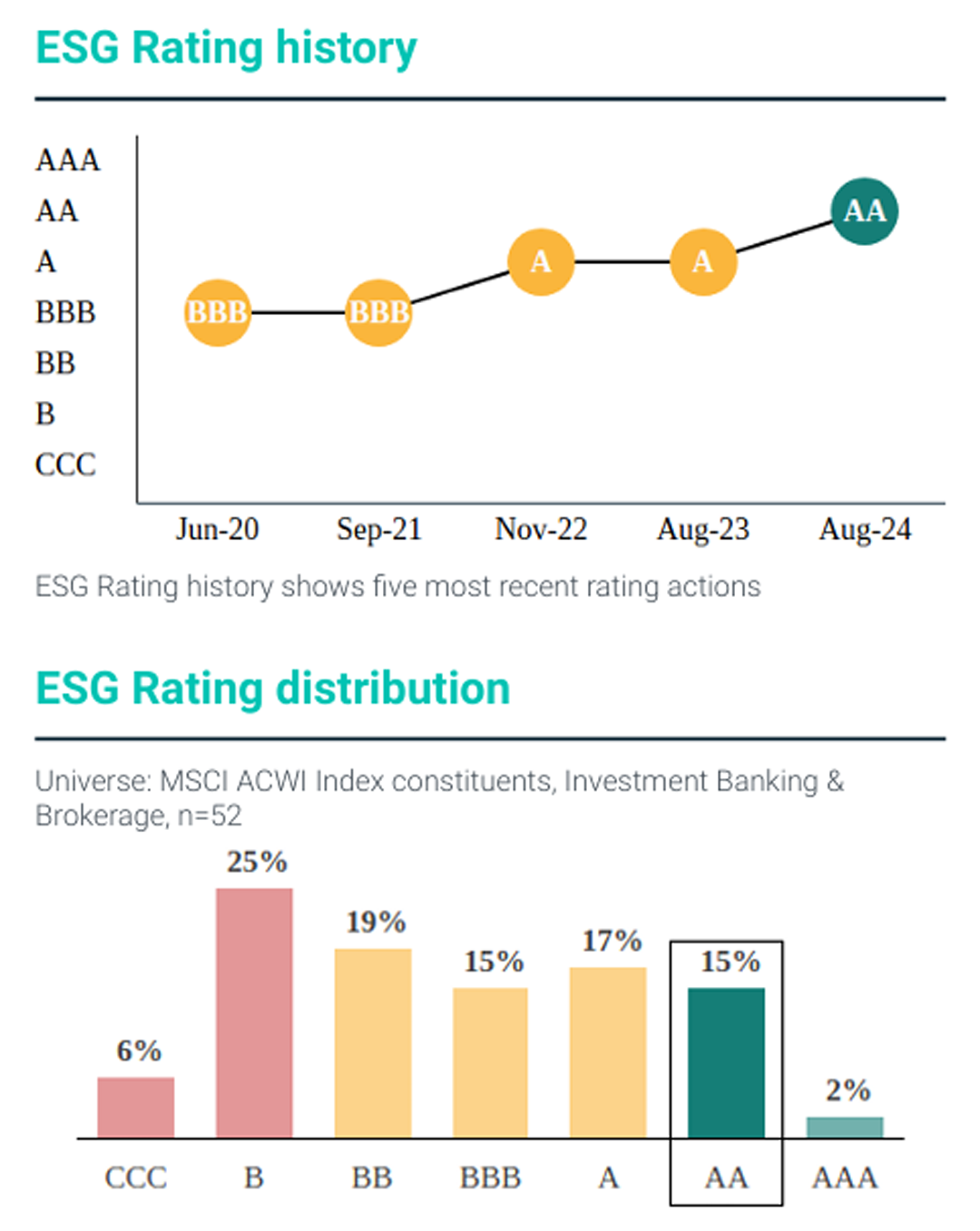 8月29日,国际权威指数机构明晟(MSCI)公布最新年度ESG评级结果,海通证券MSCI ESG评级由A级跃升至AA级,是目前已获得公开评级的中国证券公司在MSCI ESG评级中获得的最高评级,位居全球同业前17%。此次评级跃升是对公司ESG建设工作的高度肯定,代表公司ESG管理成果获得国际资本市场的专业认可。