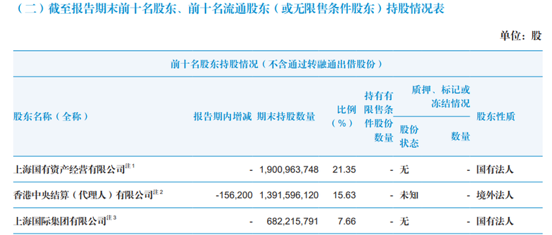 年报显示,国泰君安前三大股东是上海国有资产经营有限公司、香港中央结算(代理人)有限公司、上海国际集团有限公司,分别持股21.35%、15.63%、7.66%,实际控制人为上海国际集团有限公司。