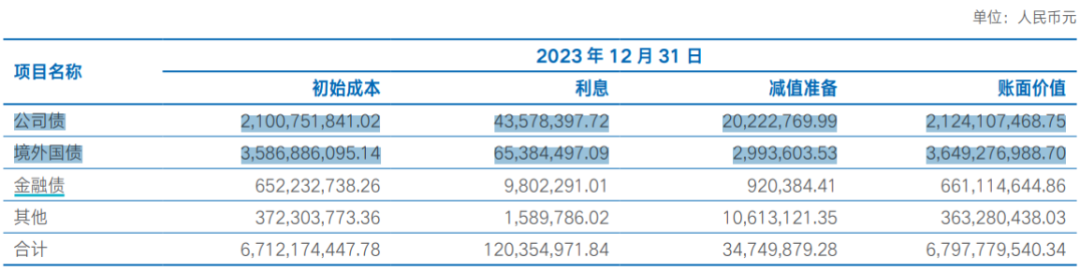 这些交易性金融资产里持有的主要资产是债券,债券资产里主要是公司债和境外国债。从计提的减值准备来看,与公司债相关的减值准备占比最大,2023年计提的公司债减值准备占海通债权投资整体减值准备近6成。