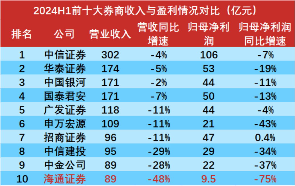 到了今年上半年,海通证券更是前十大券商中,营收降幅最大且净利润不足10亿元的券商,“前十大券商”对于它已是盛名之下、其实难副。