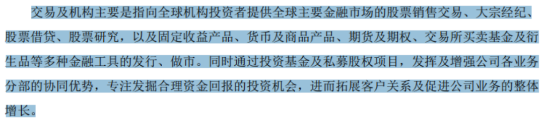 “交易及机构”业务最早出现在海通2018年年报当中,公司表示该业务除了向投资者提供股票销售交易、大宗经纪、期货及期权等常规经纪业务以外,还通过童子基金及私募股权项目的形式,发掘“合理资金回报的投资机会”。