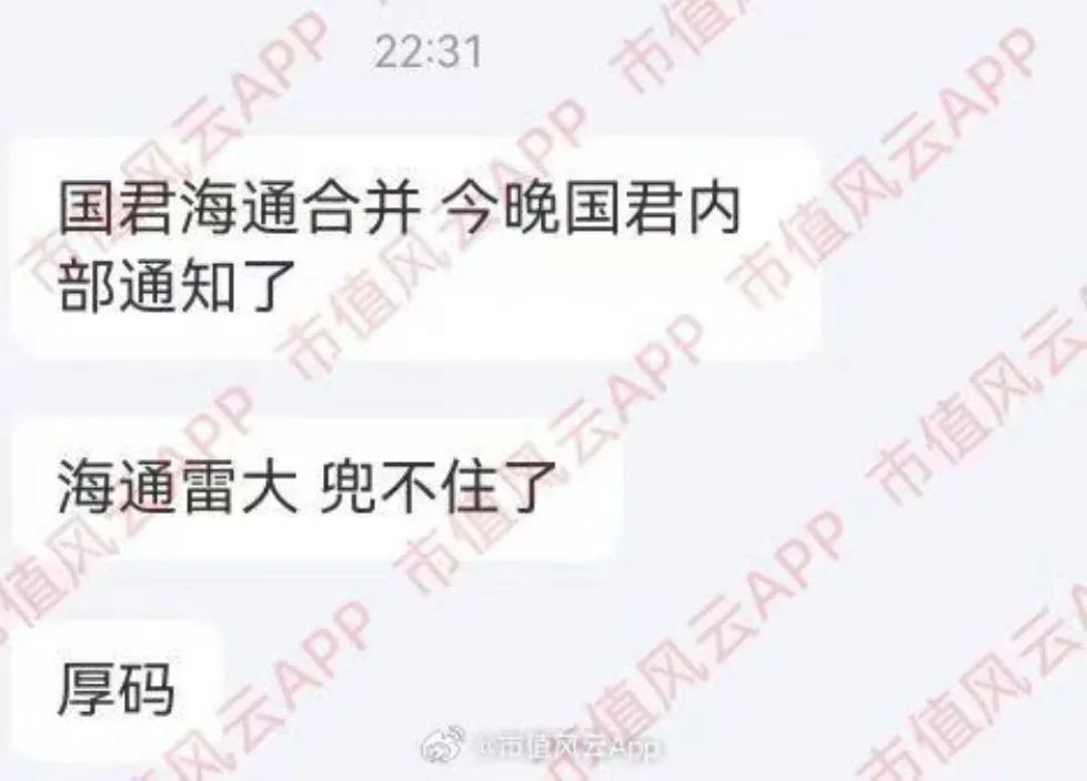 9月5日当晚,市值风云社区传来猛料:国泰君安将正式吸收合并海通证券。