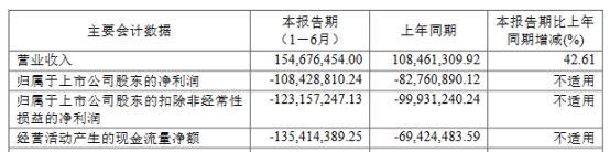 裕太微(688515.SH)近日披露2024年半年度报告。2024年上半年,公司实现营业收入1.55亿元,同比增长42.61%;归母净利润为-1.08亿元,上年同期为-8276.09万元;扣非净利润为-1.23亿元,上年同期为-9993.12万元;经营活动产生的现金流量净额为-1.35亿元,上年同期为-6942.45万元。