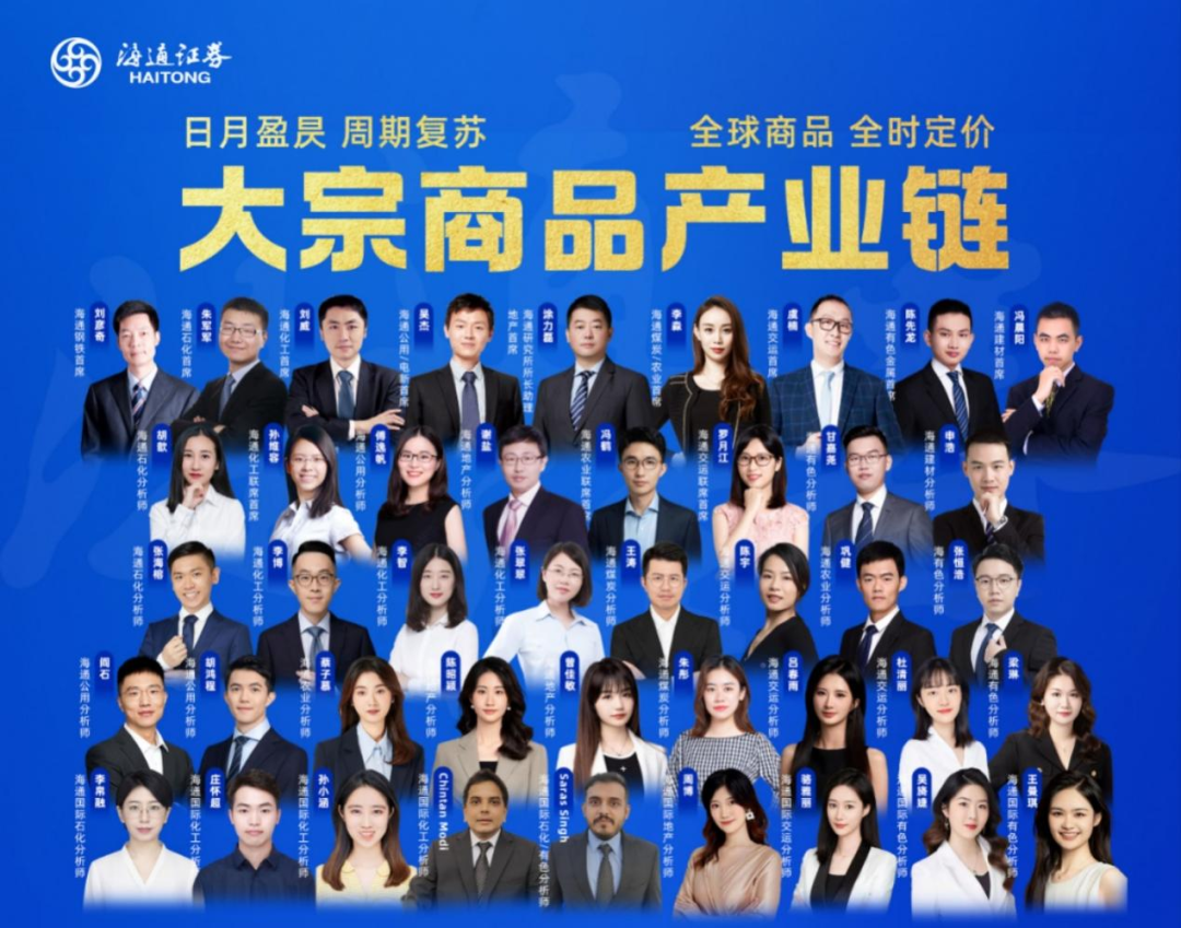 海通证券大宗商品产业链研究团队是公司研究新体系下成立的产业链融合研究队伍之一,团队聚焦地产、煤炭、有色、石化、化工、交运、农业、钢铁、建材、公用10个研究领域,致力于在大宗商品领域提出领先市场的洞见观点,为全球投资者提供前瞻、专业的研究支持。公司将持续立足“投研、产研、政研”的研究服务体系,紧跟国家战略、紧扣资本市场发展、紧贴上海及长三角等重点区域发展,以链条化、国际化、立体化的研究服务,助力资本市场健康稳定发展。