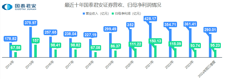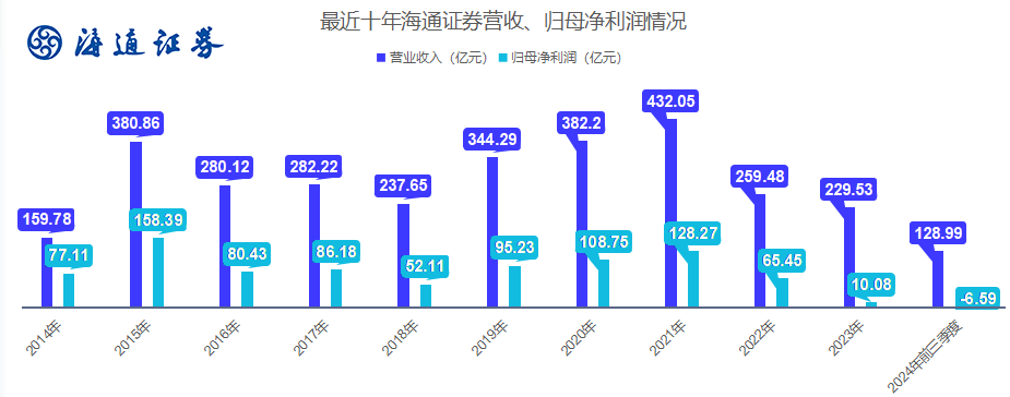 数据显示,最近十年,海通证券的业绩变化很大,宛如坐过山车。