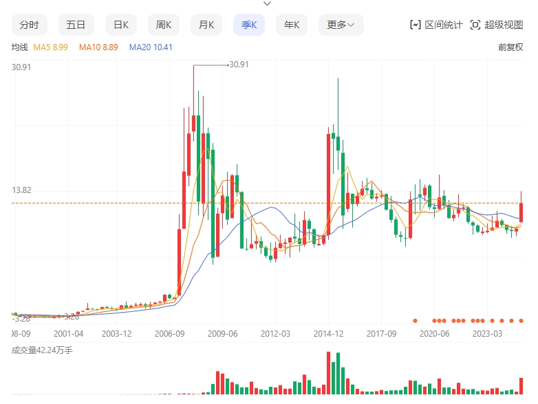 不过,因为失去了业绩基本面的支撑,海通证券目前的股价,仍然逊色于2019年、2020年超过14元的价格,与2007年、2008年接近30元的价格更是云泥之别。