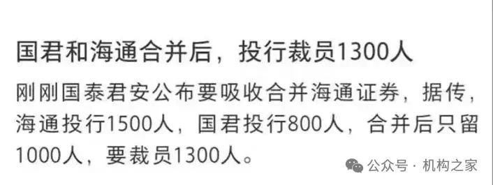 值得一提的是,此前在社交媒体上曾一度传出海通证券、国泰君安在合并之后,投行部门将大幅裁员的传闻。