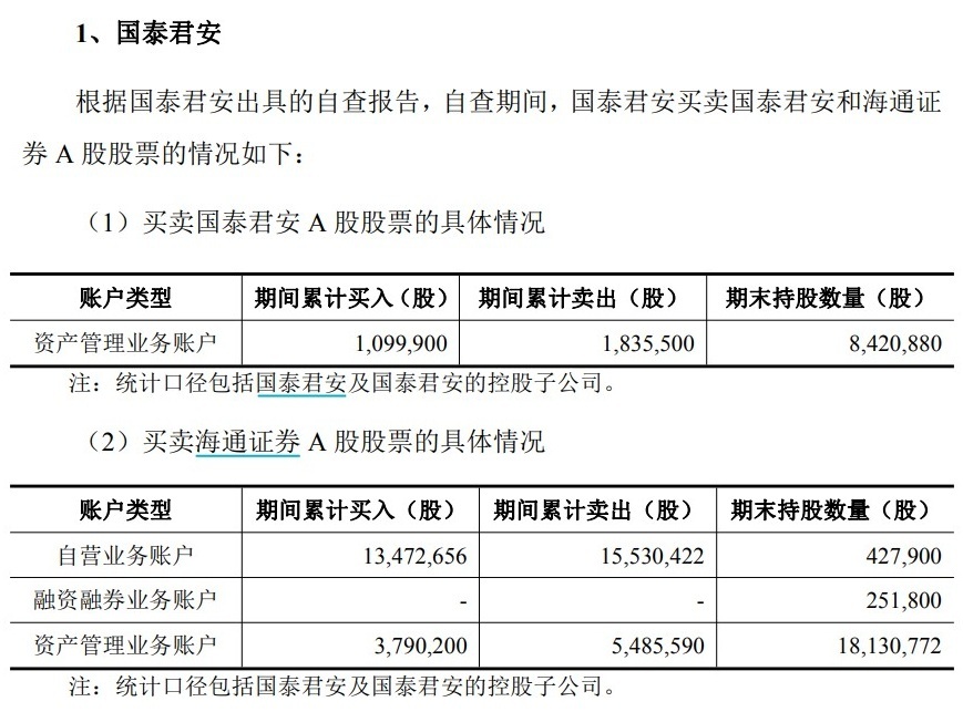 而在12月12日晚,国泰君安与海通证券关于内幕信息知情人交易的核查结果也正式出炉。