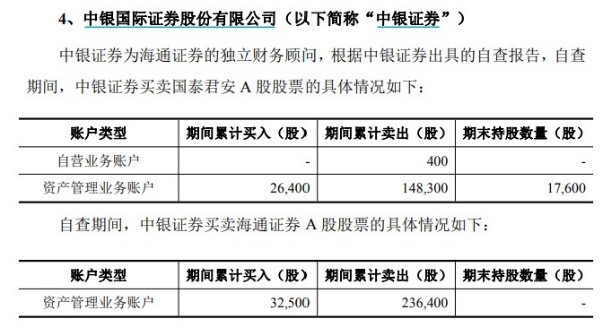 除了自然人以外,相关机构买卖国泰君安A股和海通证券A股的相关情况,主要是涉及机构的自营账户、资管账户以及融资融券账户等。