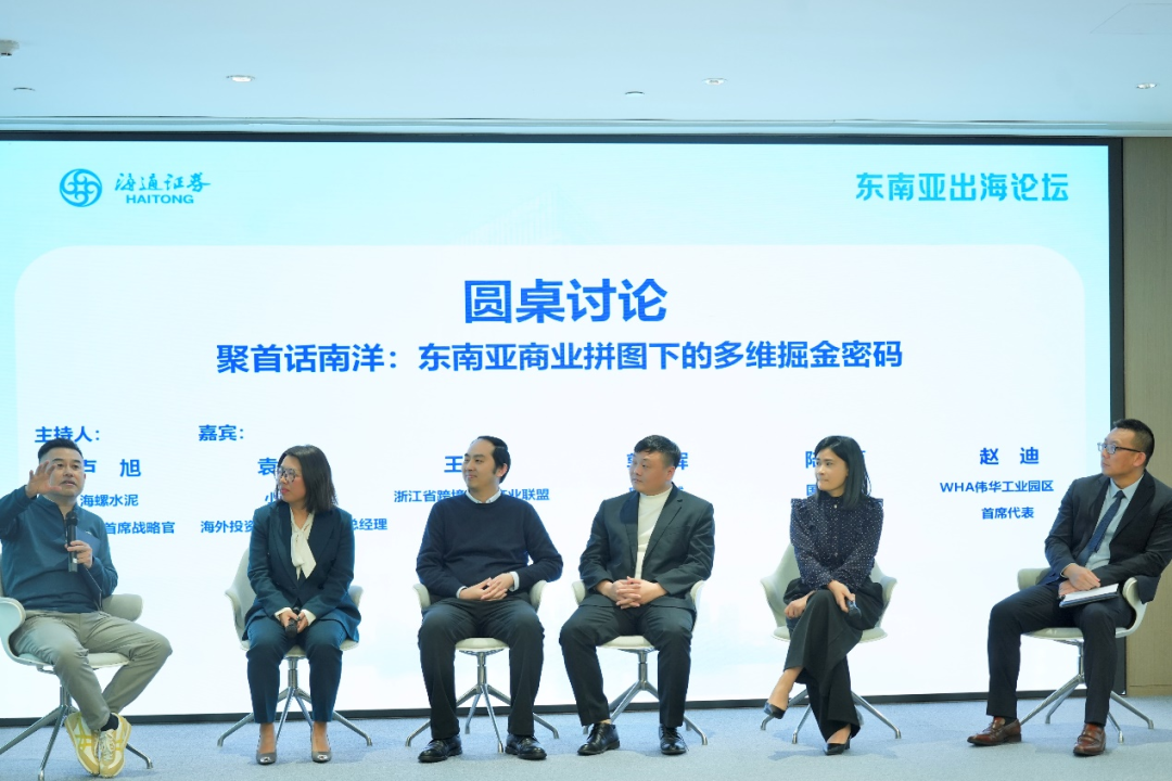 圆桌讨论环节,海螺创业投资首席战略官卢旭、小商品城海外投资发展有限公司总经理袁颖、浙江省跨境电子商务产业联盟常务副主席王少华、前蜜雪冰城新马负责人郭光辉、国筠燕窝董事长陆禹萌、泰国/越南WHA伟华工业区首席代表赵迪围绕“聚首话南洋:东南亚商业拼图下的多维掘金密码”进行讨论,深入分享东南亚各国的市场特色、各行业发展的历史演变和未来趋势,以及中资企业出海的盲点和机遇。