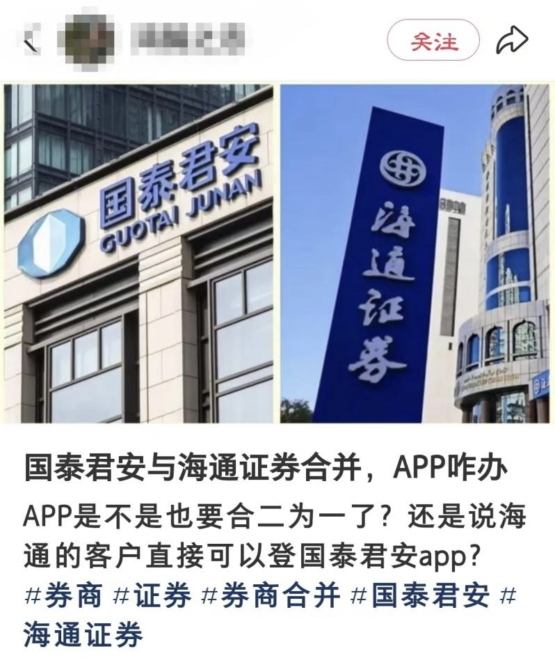 这个问题,去年9月两家券商刚宣布合并时,就有投资者在社交媒体上发帖。比如有投资者就问:“(两家APP)是否也合二为一了?还是海通的客户可以直接登国泰君安APP?”