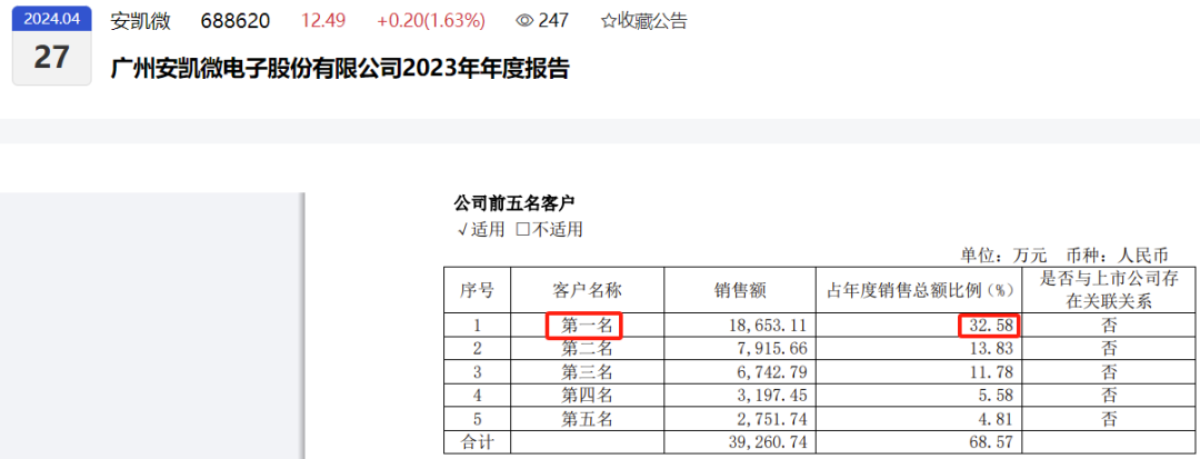4月30日,广州安凯微电子(688620)发布2024年年报:2024年实现营业收入5.27亿元,同比下降7.94%,扣非归母净利润-0.624亿元,同比下降945.74%,经营活动产生的流量净额-0.600亿元,同比下降428.78%。这是公司上市次年向投资者交出的成绩单!2025年1-3月营收、净利润同比仍然下降。安凯微2023年6月27日上市。上市当年扣非归母净利润就只有737.74万元,同比下降66.93%。上市当年净利润就大幅下降,上市第二年就变脸亏损,2025年一季报继续营收、净利润同比双降,太尴尬了!参考文章《预计2022年净利润同比下降50%左右,对第一大客户的销售是否真实?这公司科创板IPO》