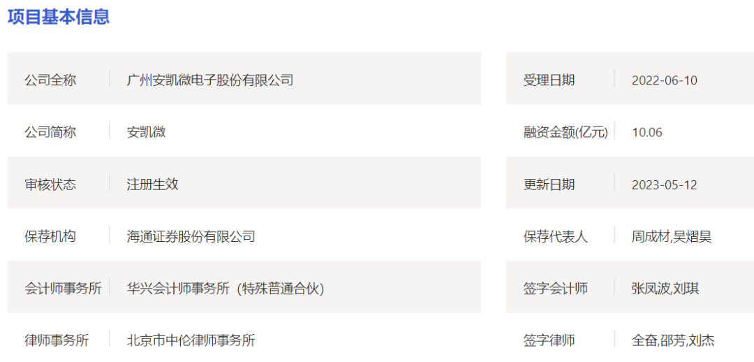 公司申报科创板IPO于2022年6月10日获得受理,2023年1月13日过会,2023年4月17日提交注册,2023年5月9日获得注册,2023年6月27日挂牌上市。公司IPO保荐机构为海通证券、审计机构为华兴会计师事务所、法律服务机构为北京市中伦律师事务所。