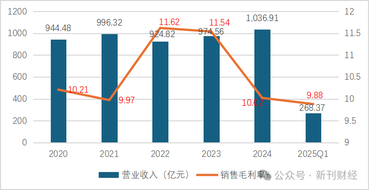 2024年企业营收虽创五年峰值,但归母净利润仅7.04亿元,同比增长2.30%,对应归母净利率低至0.68%。扣除非经常性损益后,盈利能力疲态更显——2024年扣非净利润4.19亿元,占营收比例仅0.40%;2025年第一季度扣非净利润1.38亿元,虽同比增长6.46%,但占当季营收268.37亿元的比例仅为0.51%。非经常性收益(如股权增值)虽短期提振净利润表现,却难以持续支撑盈利质量,无法掩盖扣非净利率近五年处于0.25%至0.68%的较低水平。