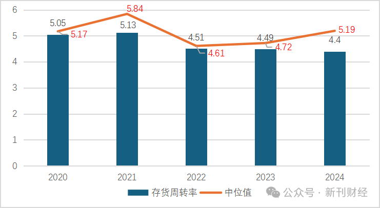 自身的存货管理效率方面,四川长虹也表现出弱化趋势,订单减少则会进一步加剧存货堆积。企业年报显示,自2021年企业的存货周转率小幅上升后,在2022年开始连续三年下滑,2024年降至4.40次/年,较行业中位值的差距从2021年0.06次扩大至0.79次,效率落差扩大12倍。这一趋势反映库存积压问题加剧,核心动因包括代工业务被动囤货、低效产品滞销以及供应链响应迟滞。横向对比,长虹2024年存货周转率较行业标杆企业,如TCL科技的8.08次,幅度相差45.54%,说明运营效率亟待优化。