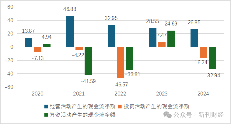 四川长虹现金流结构呈现系统性压力。数据显示,经营活动现金流净额从2021年46.88亿元降至2024年26.85亿元,四年累计降幅达42.7%,反映主营业务创现能力持续弱化。投资活动现金流的净额在正负之间频繁变换,2022年因资本支出净流出46.57亿元,2023年转为净流入7.47亿元,2024年再度净流出16.24亿元,同比变动幅度达-317.40%。筹资活动现金流也有显著波动,2021年净偿还债务41.59亿元,2023年融资流入24.69亿元,2024年重回净流出32.94亿元,同比降低233.41%,企业融资策略可能在制定或执行中,缺乏足够的连续性且偿债压力凸显。综合而言,公司经营现金流萎缩趋势未逆转,依赖非持续性投资收益及外部融资调节资金平衡,财务弹性持续承压。