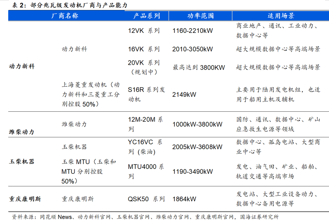 1、动力新科是国内具备兆瓦级能力的厂商之一,AIDC电源用发动机有望助力公司实现较快增长