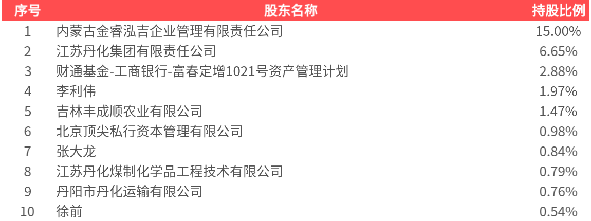 公司股东户数为5.38万户,前十大股东持股数量为3.24亿股,占总股本比例为31.86%,前十大股东持股情况如下: