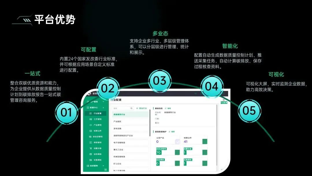 “天佑数字化碳管理平台”以标准化、数字化、智能化为手段,可为各行业、应用场景进行碳排放全过程管理,并通过知识库、行业数据动态库、碳排放因子库等为碳排放的精准核算提供参考依据,让碳排放管理变得更轻松、更实效、更准确!