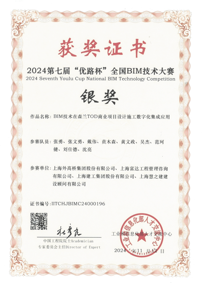 近日,由同济科技下属上海慧之建建设顾问有限公司提供BIM咨询服务的森兰印象城项目荣获2024第七届“优路杯”全国BIM技术大赛银奖。