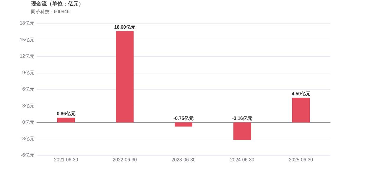在经营稳健性方面,同济科技面临存货周转效率下降的压力,存货周转天数为698.76天,较2024年上半年增长241.56%,表明资产运营效率有所放缓。经营活动产生的现金流净额4.5亿元,相比2024年同期的-3.16亿元实现由负转正,经营现金流状况得到改善。此外,2025年上半年的资产负债率68.20%,同比增长4.02个百分点,这意味着公司财务杠杆有所提升。