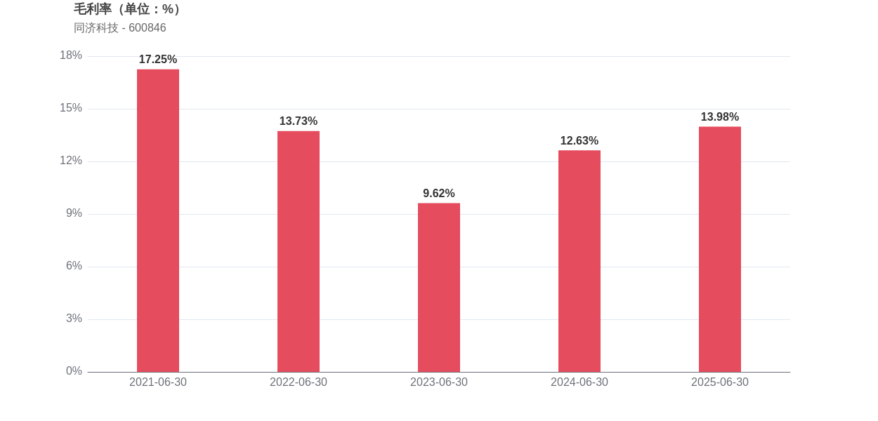 从反映盈利质量的指标来看,同济科技净利率由2024年上半年的13.39%下滑至10.05%,下降3.34个百分点,而毛利率从12.63%提升至13.98%,上升1.35个百分点,净资产收益率为3.53%,同比下降2.38个百分点。