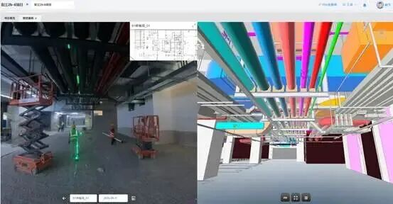 在深化设计阶段,慧之建主导把控机电全专业管线综合优化,协调多家专业BIM单位,在优化过程中通过管线合并、路由调整及优化结构等方式,降本增效,提升项目品质;同时组织应用二结构深化设计插件,自动布设 6630 根构造柱,实现机电洞口与砌体结构碰撞提前预警,减少后期拆改凿除工作量,项目利用我司自主研发的“筋斗云”BIM管理平台,双规同屏技术进行一致性校核,现场图模一致性检查效率提升 48%。