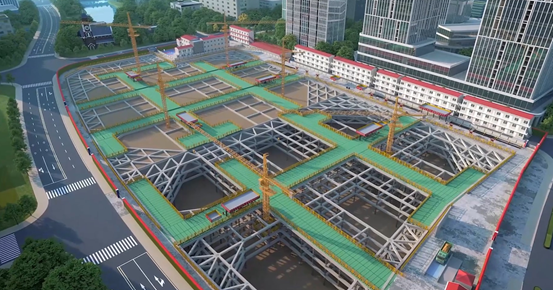 在施工阶段前期,项目依托慧之建编制的BIM实施大纲中的建模标准搭建全专业协同模型,创新开发模型图纸一致性检查模块,精准排查出 48 类、716 处建筑结构问题,提前规避传统人工审核遗漏风险,助力项目节省建造工期。针对超高层垂直运输难题,通过 BIM+AI 吊装路径算法优化塔吊布置,结合 4D 进度模拟与每周 3 次无人机航拍对比,动态调整施工动线,最终帮助缩短项目整体工期,实现“效率与质量双优”。