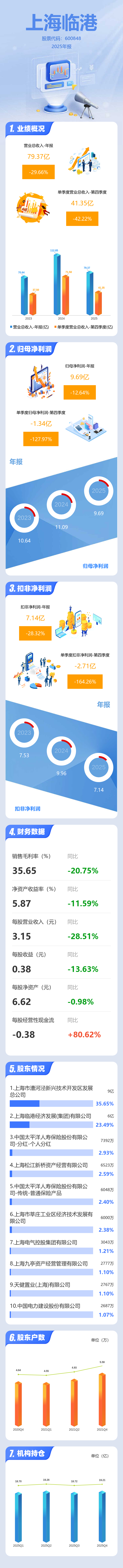 证券之星消息,上海临港2025年年报显示,当年度公司主营收入79.37亿元,同比下降29.66%;归母净利润9.69亿元,同比下降12.64%;扣非净利润7.14亿元,同比下降28.32%;其中2025年第四季度,公司单季度主营收入41.35亿元,同比下降42.22%;单季度归母净利润-1.34亿元,同比下降127.98%;单季度扣非净利润-2.71亿元,同比下降164.26%;负债率66.96%,投资收益8.3亿元,财务费用9.03亿元,毛利率35.65%。