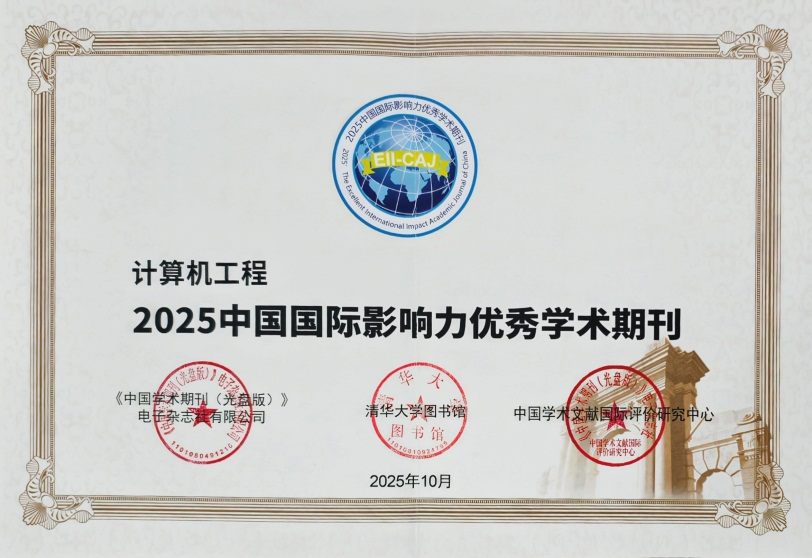 近年来,期刊已被全球最大的文摘与引文数据库Scopus 、中国科学引文数据库(CSCD)核心库、DOAJ数据库、INSPEC数据库(原英国《科学文摘》)、EBSCO数据库、日本科学技术振兴机构数据库(JST)、中国知网数据库(CNKI)等收录。是北大中文核心期刊、中国科技核心期刊,RCCSE 中国核心学术期刊(A)。同时,入选CCF《计算领域高质量科技期刊分级目录》T2、《世界期刊影响力指数(WJCI)报告》Q1和“2024 中国国际影响力优秀学术期刊”(TOP 期刊)。