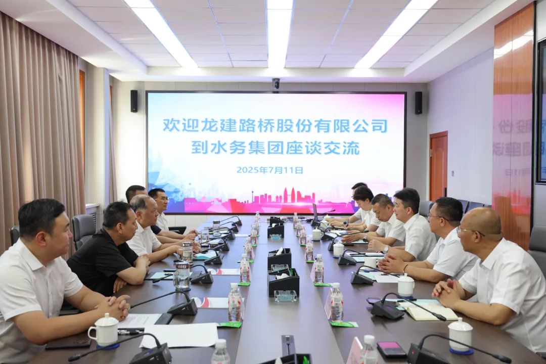 近日,龙建股份与哈尔滨水务发展建设集团有限公司进行座谈交流。水务集团党委书记、董事长孙明,龙建股份党委书记、董事长宁长远及双方有关人员参加座谈。