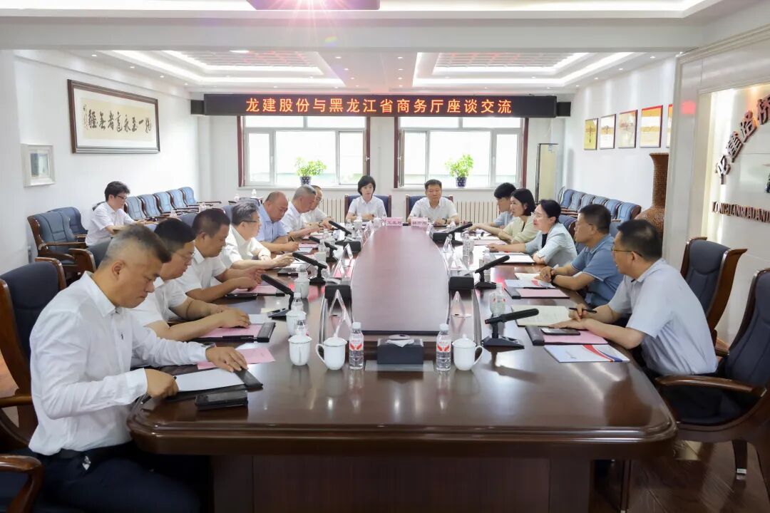 近日,龙建股份与黑龙江省商务厅进行了座谈交流。黑龙江省商务厅副厅长邢颖娜、对外贸易处处长于俊茁、国际经贸关系处处长李乐禹、服务贸易和商贸服务业处负责人何扬,龙建股份党委委员、副总经理刘树军,党委委员、总会计师于海军及双方有关人员参加座谈。