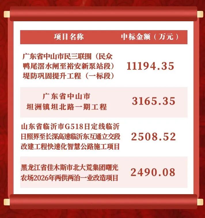 本轮中标,是龙建股份锚定“1356”发展战略、聚焦“十五五”改革发展目标任务聚力攻坚的生动实践和重要成果。下一步,龙建股份将牢固树立“一家人、一盘棋”理念,持续深耕市场、精准发力、提质增效,为推动企业高质量发展、奋进千亿新征程注入强劲动能。