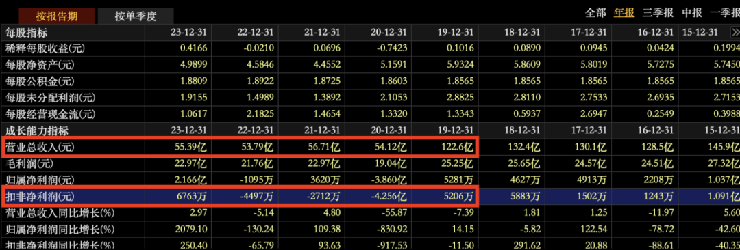 进入2023年,银座股份也终于从亏损的状况中扭转。财务数据显示,2023年银座股份实现营业收入55.39亿元,同比增长2.97%,实现归母净利润2.17元,同比大幅增长1593.87%。