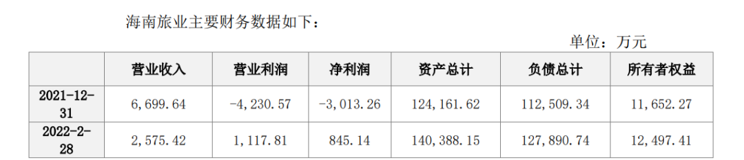 海南旅业于2011年成立,持有经营海南万宁首创奥特莱斯店。根据公告,2021年,公司营业收入6700万元,营业亏损4231万元,净亏损3013万元,资产总计12.4亿元,负债总计11.25亿元,所有者权益1.17亿元;2022年前两个月,公司营业收入2575万元,营业利润1118万元,净利润845万元,资产总计14.0亿元,负债总计12.8亿元,所有者权益总计1.3亿元。